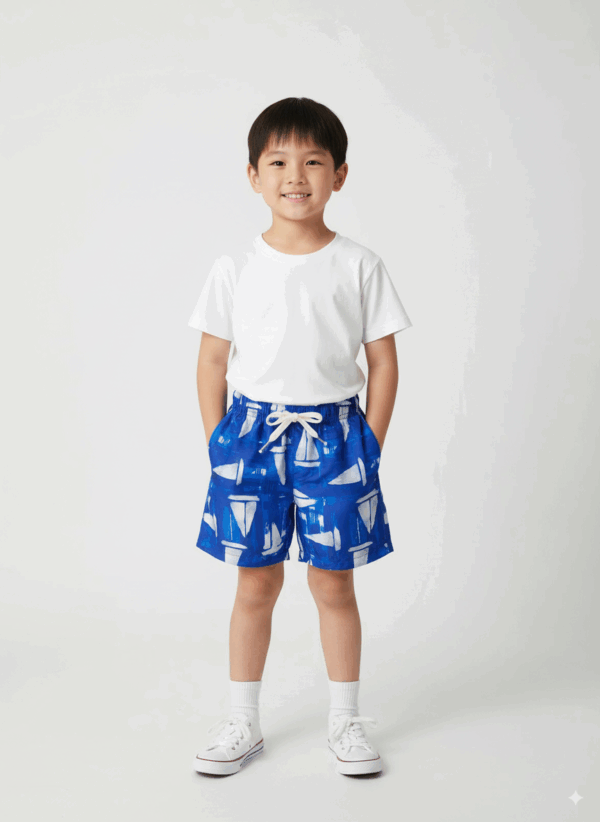 Bermuda de Nylon masculina infantil, na cor azul Tamanho 4