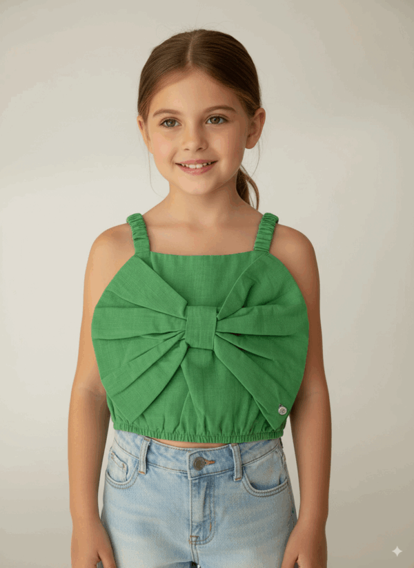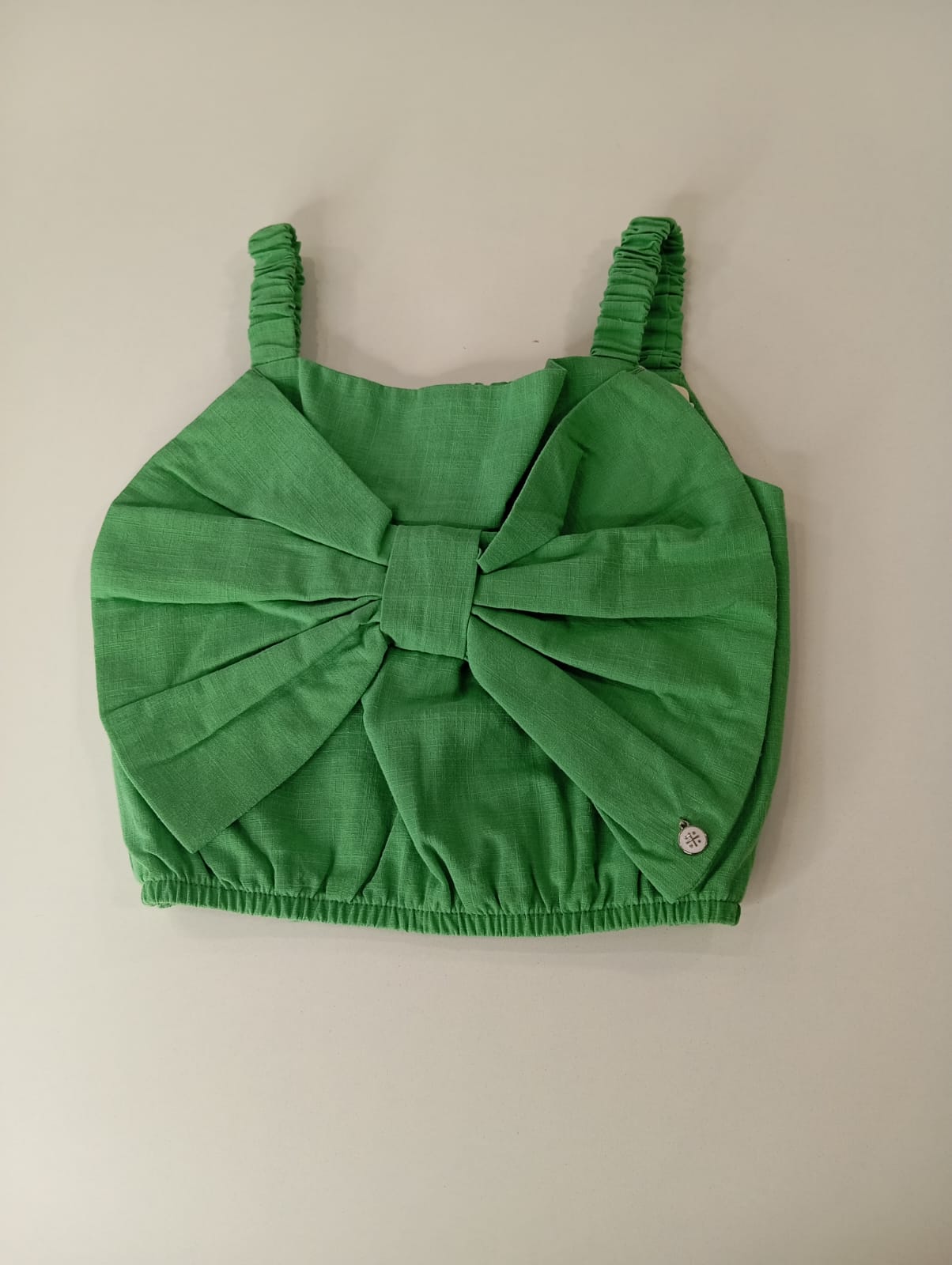 Blusa cropped com detalhes em laço, na cor verde pistache
