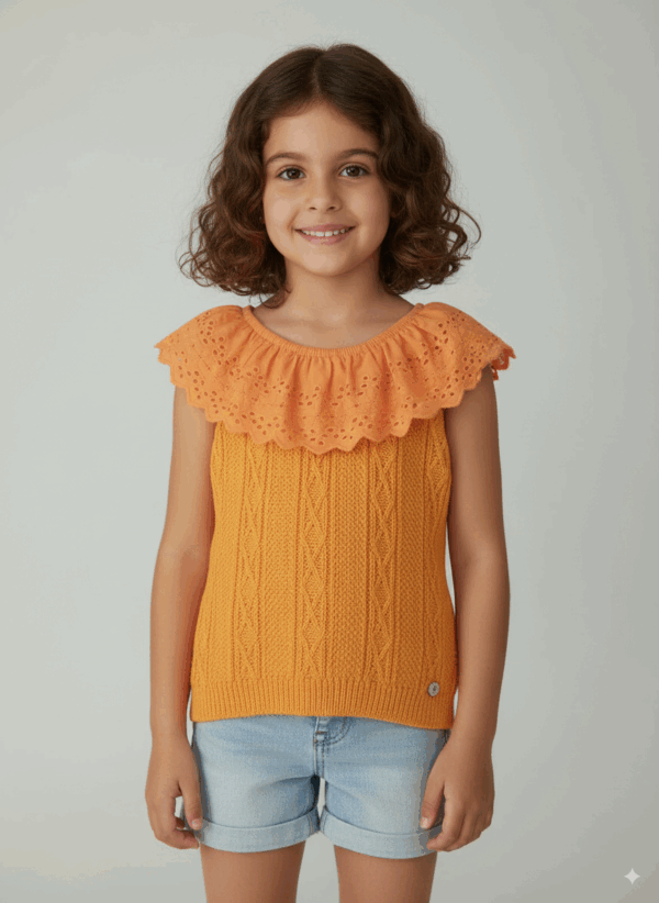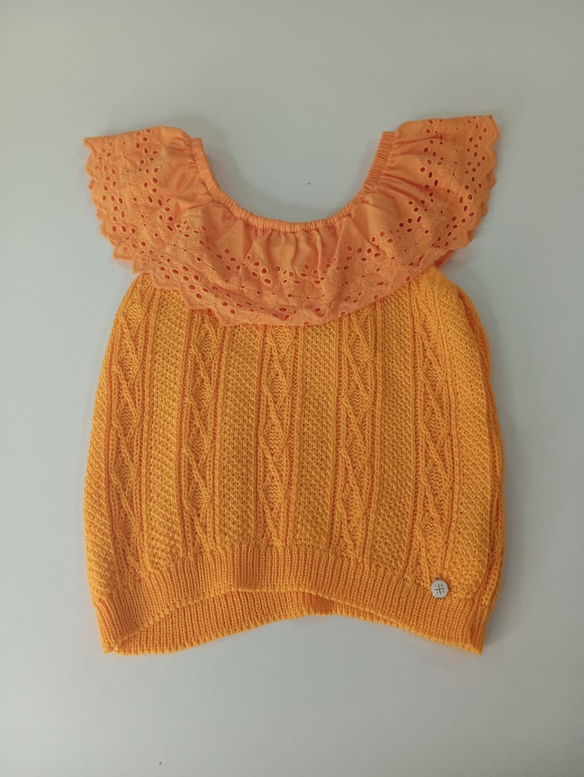 Blusa top na cor laranja com detalhes com lese Tamanho 8