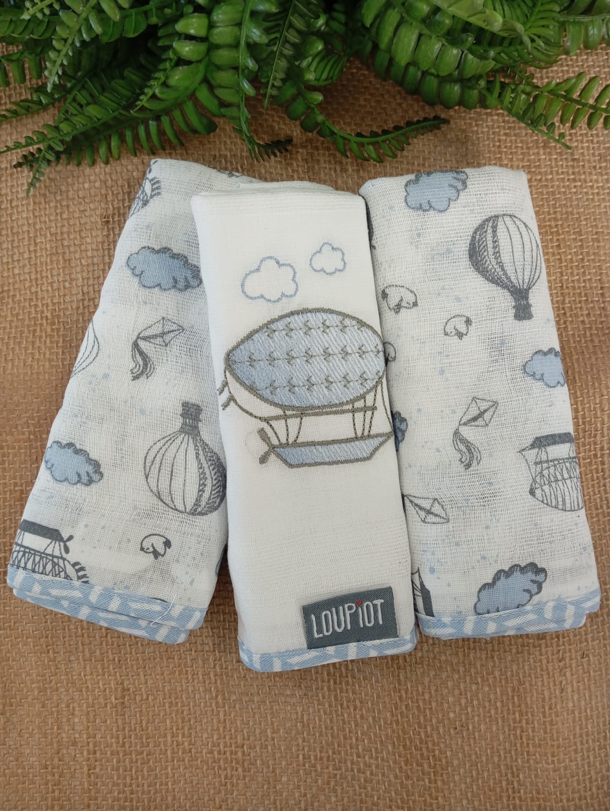 Fraldas de ombro com bainha, bordadas, 3 unidades , 70 cm X 68 cm.