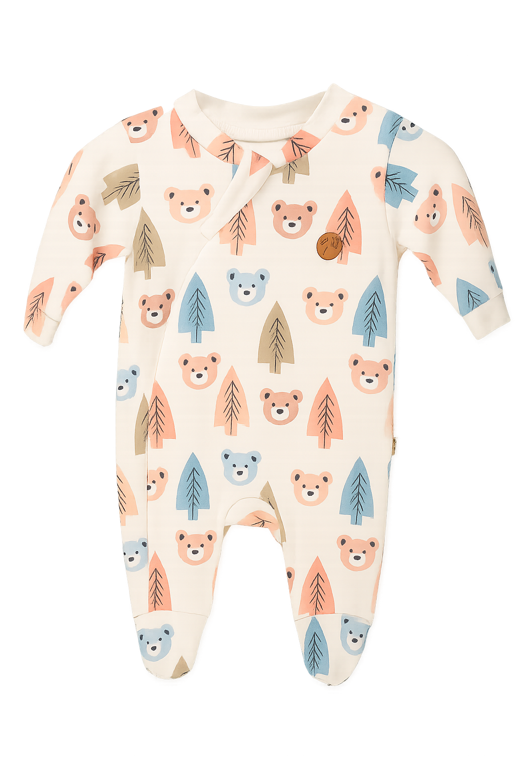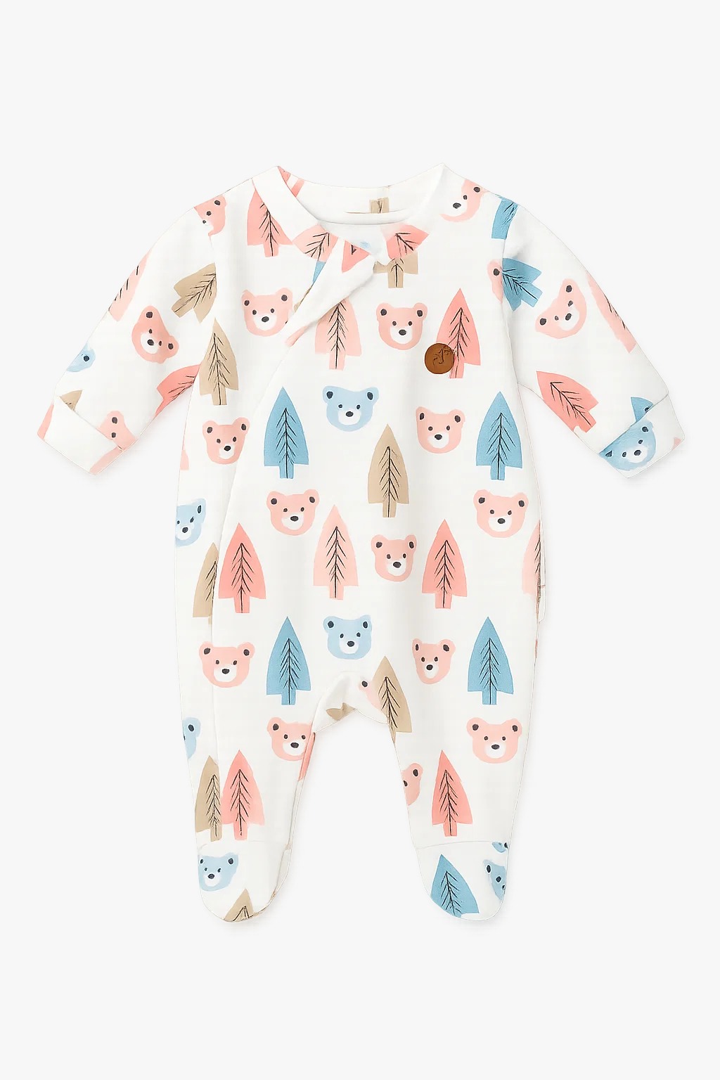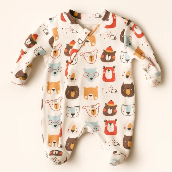 Macacão digital em suedine, super macio. Estampa delicada, toque suave.