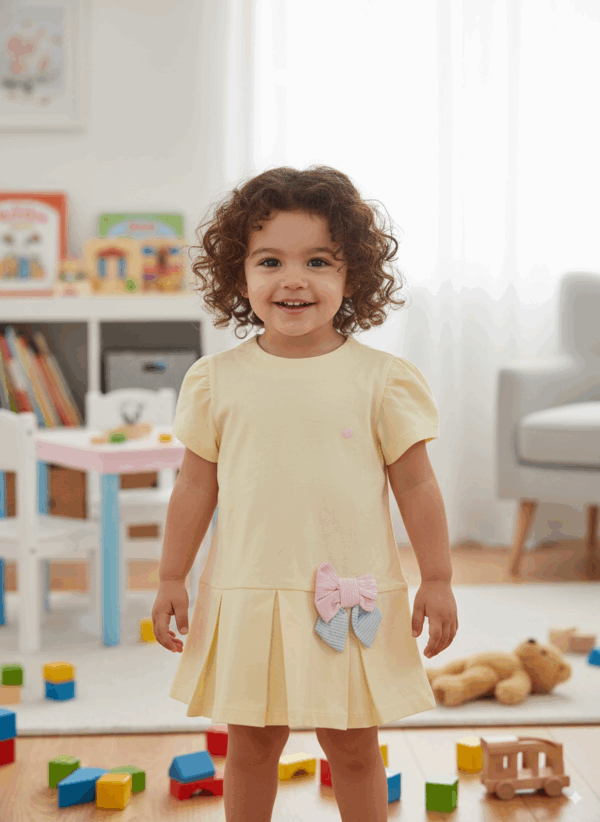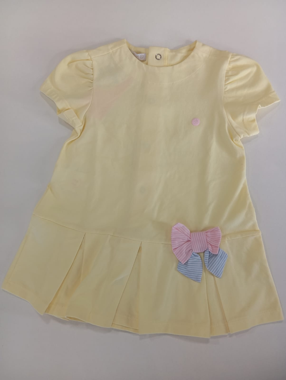 Vestido em moletinho com detalhe de laço, na cor amarelo Tamanho G