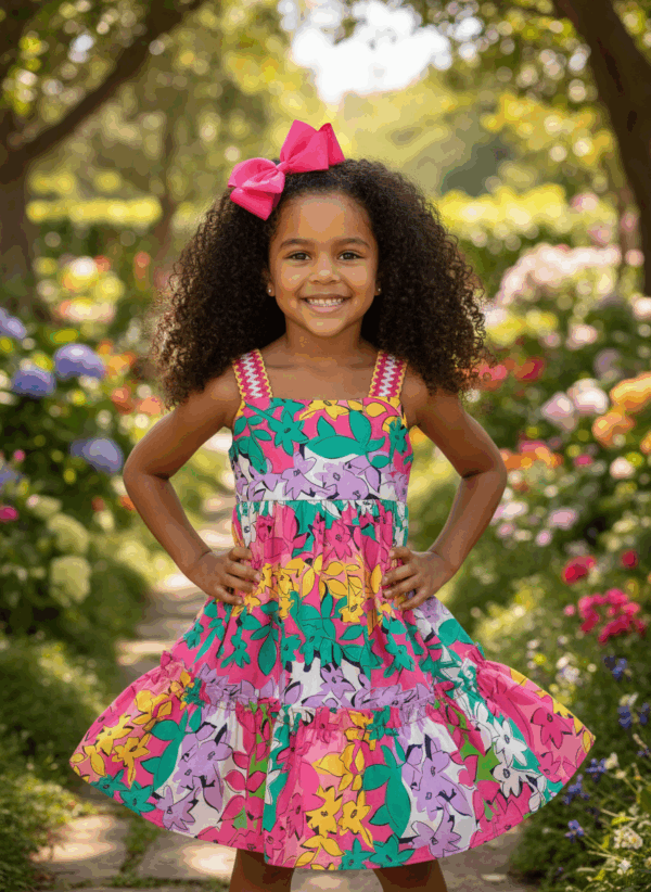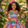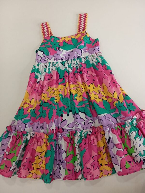 Vestido florido,com detalhe de elástico nas costa, alça em crochê Tamanho 4 e 6