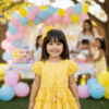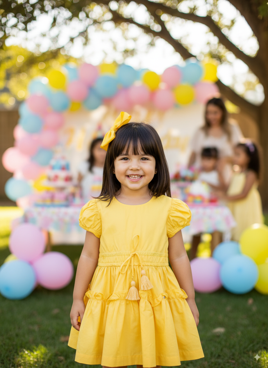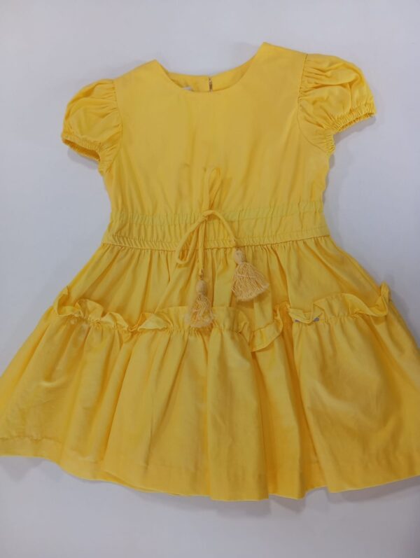 Vestido em tricoline com elástico na cintura e com laço, vestido na cor amarelo claro Tamanho 1
