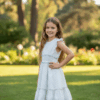 Vestido midi com elástico na cintura e barra com babado Vestido no off white Tamanho 4, 6 e 8